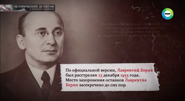 Описание: В декабре 1953 года в бункере штаба Московского военного округа был расстрелян Лаврентий Берия. Человек, которого долгие годы считали вторым человеком в руководстве СССР после самого Иосифа Сталина. Официально его обвиняли в шпионаже и антисоветском заговоре с целью захвата власти. Но были и другие версии. По одной из них, Берия стал жертвой заговора своих политических противников. По другой, окружению экс-наркома внутренних дел надоели бесконечные любовные похождения главного чекиста. Была и третья версия, на которой настаивал сын Лаврентия Берии – Серго. Он был уверен, что на скамье подсудимых во время процесса оказался двойник, а его отец был убит намного раньше. Какая из этих версий ближе к истине, узнаем в программе «Исторический детектив» с Николаем Валуевым.